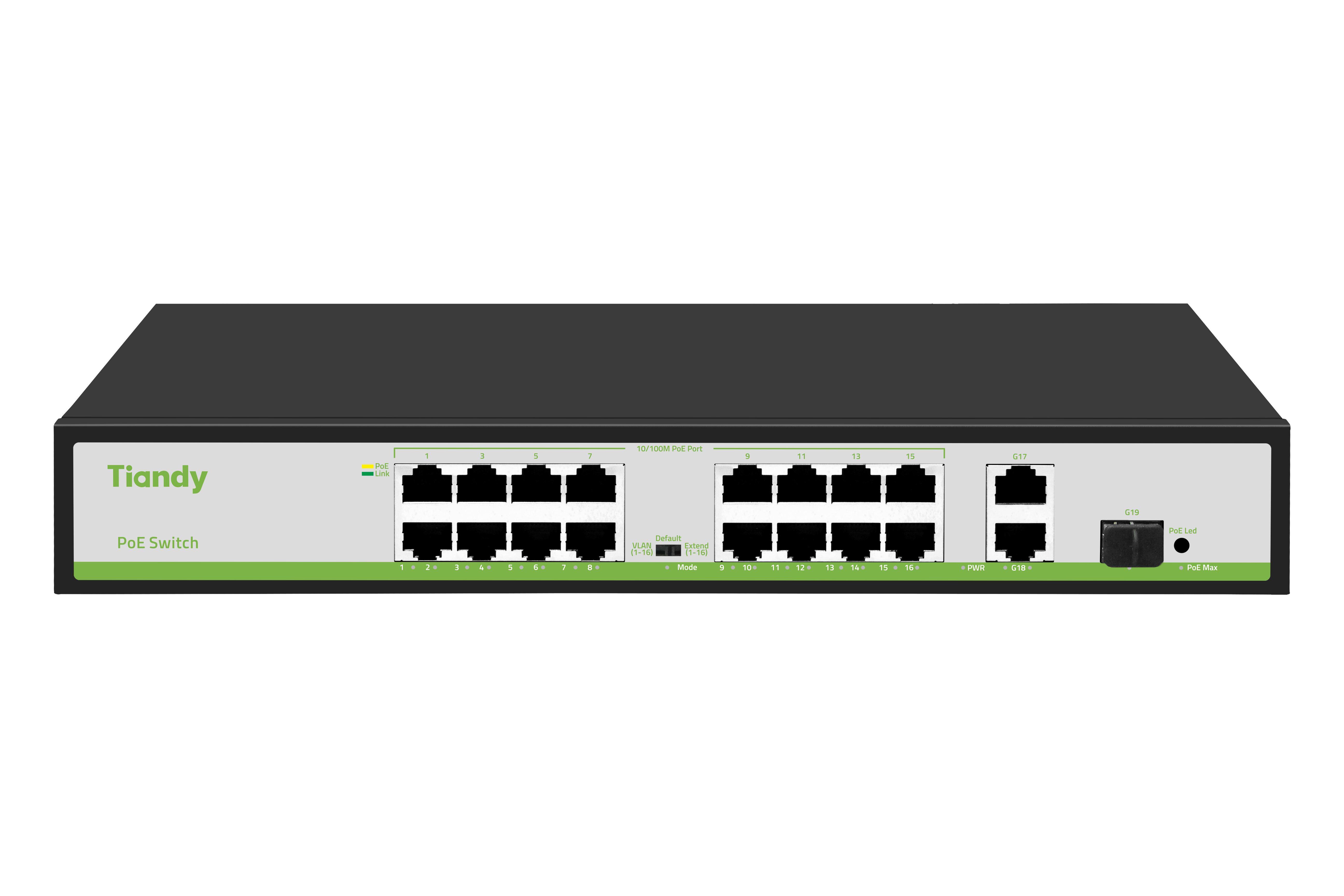 16个百兆PoE网口+2个千兆网口+1个千兆SFP口 ;