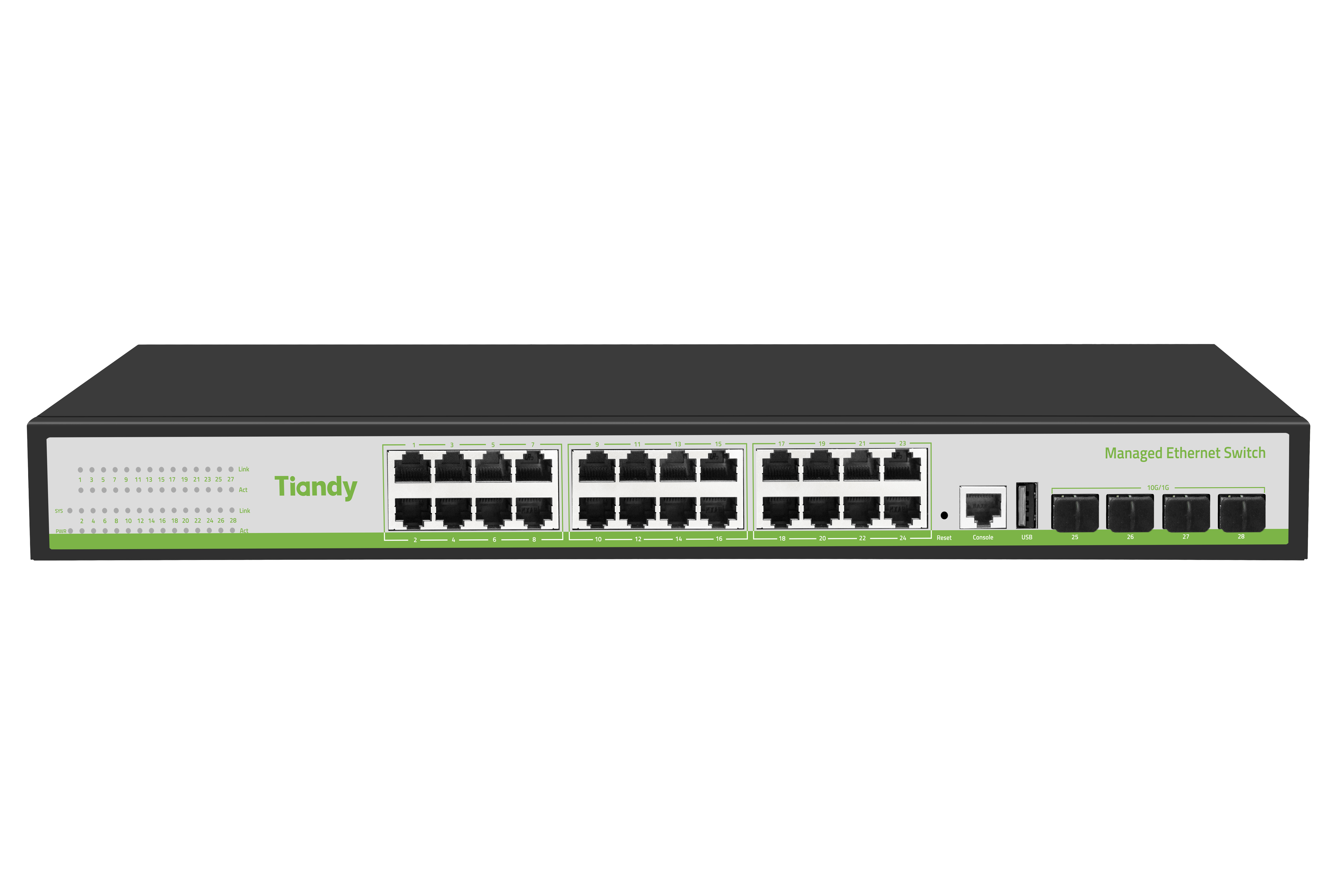 支持24个千兆网口+4个万兆光口+1个治理端口+1个USB端口